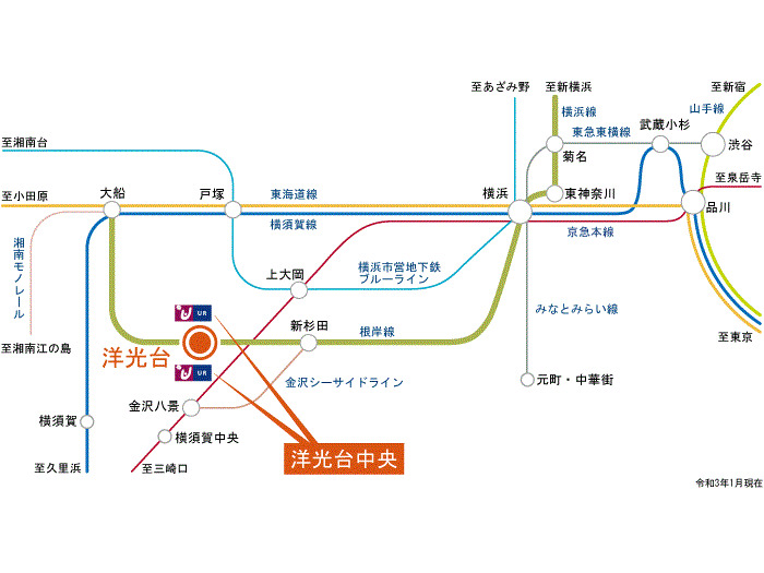 JR京浜東北線 『 洋光台 Sta. 』 1 min walk 京急本線 『 上大岡 Sta. 』 21 min by bus 『洋光台駅前』 Bus Stop 1 min walk 横浜市営ブルーライン 『 港南中央 Sta. 』 18 min by bus 『洋光台駅前』 Bus Stop 1 min walk |