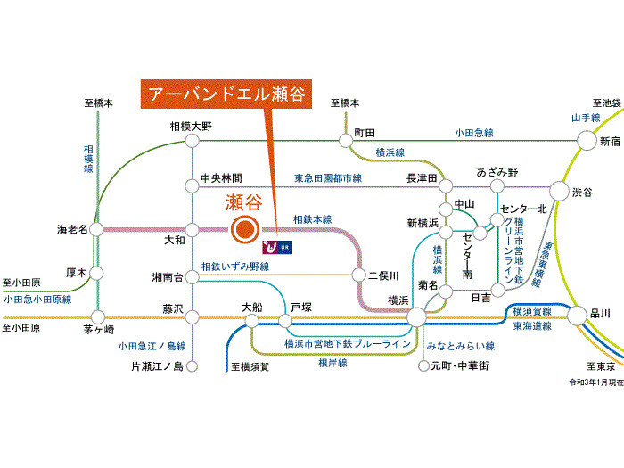 横浜市営ブルーライン 『 立場 Sta. 』 26 min by bus 『橋戸二丁目』 Bus Stop 7 min walk 小田急江ノ島線 『 大和 Sta. 』 33 min walk |