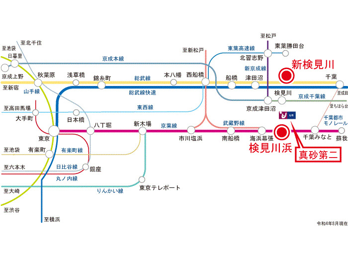JR総武線 『 新検見川 Sta. 』 7 min by bus 『検見川浜駅』 Bus Stop 7 min walk JR京葉線 『 稲毛海岸 Sta. 』 16 min walk |