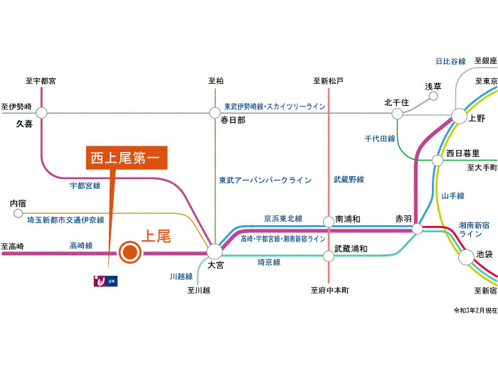 JR京浜東北線 大宮 Sta. 27 min by bus 『西上尾第一団地』 Bus Stop 3 min walk