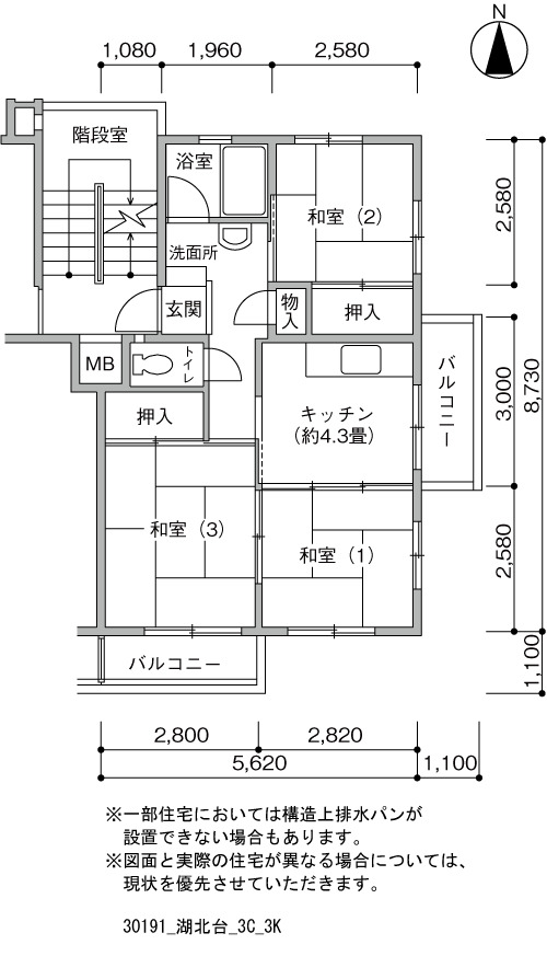 図面と実際の住宅が異なる場合については、現状を優先させていただきます。